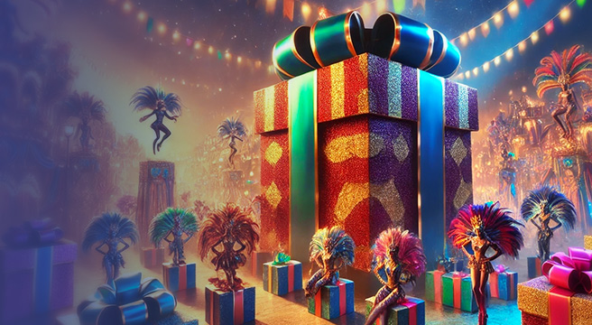 Tarefa "Cinco noites de Carnaval": qualquer vitória por 5 dias seguidos em qualquer slot, em qualquer saldo, com aposta a partir de BRL 2. Recompensa: 70 bilhetes.